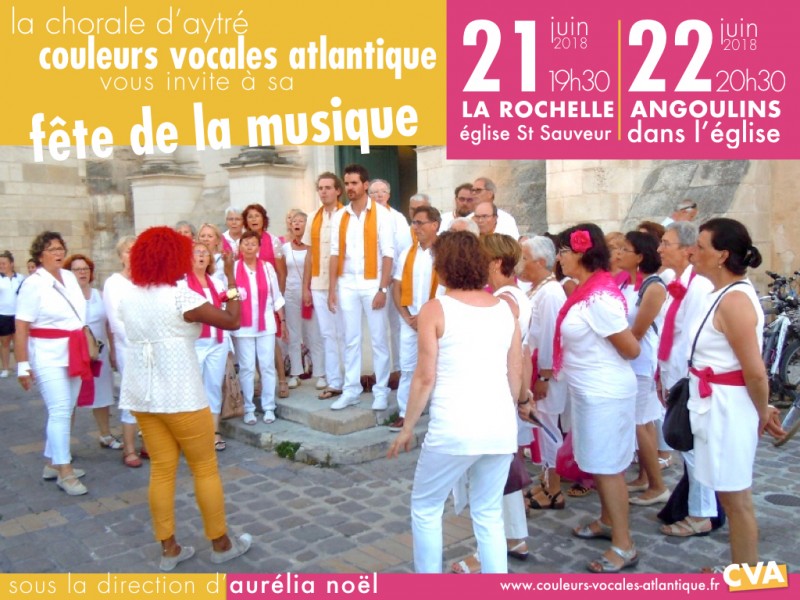 - Angoulins, la chorale CVA seule, à l'église d'Angoulins le 22 juin à 20h30.